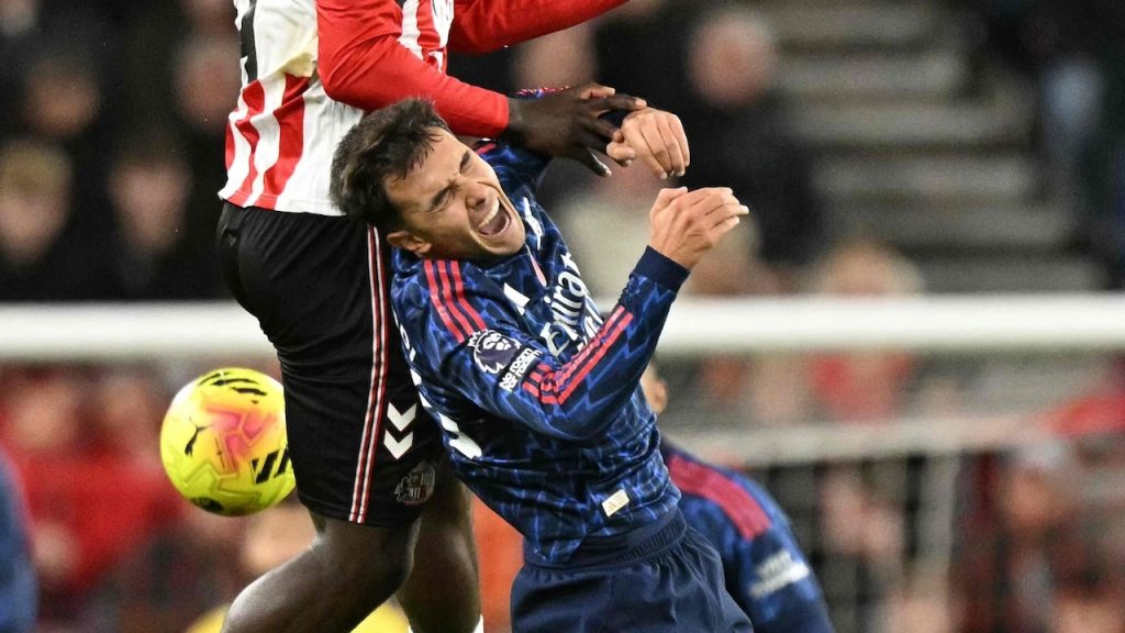 อาร์เซน่อลเริ่มตั้งเกมได้ดีขึ้นในช่วงกลางครึ่งแรก การเคลื่อนที่ของแนวรุกและการต่อบอลจังหวะสั้นตามแบบฉบับของอาร์เตต้าทำให้ซันเดอร์แลนด์เริ่มถอยลงไปป้องกันลึกมากขึ้น และในที่สุด “ปืนใหญ่” ก็ได้ประตูขึ้นนำจากจังหวะเข้าทำที่มีความแม่นยำสูง การต่อบอลสามจังหวะในพื้นที่แคบทำให้กองหน้าอาร์เซน่อลหลุดเข้าไปยิงอย่างเด็ดขาด ส่งเสียงเชียร์ของแฟนทีมเยือนให้ดังสนั่น แม้จะเป็นเกมเยือนก็ตาม ประตูนี้เป็นเหมือนการยืนยันว่าคุณภาพของทีมเยือนยังคงเหนือกว่าในหลายมิติ และถ้าพวกเขายังคงควบคุมเกมแบบนี้ต่อไป ผลการแข่งขันน่าจะเข้าทางทีมจากลอนดอนเหนืออย่างมาก